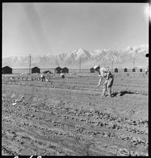 | Keywords: Manzanar Relocation Center, Manzanar, California. Evacuees of Japanese ancestry are growing flouris . . . - NARA - 537978.jpg Scope and content The full caption for this photograph reads Manzanar Relocation Center Manzanar California Evacuees of Japanese ancestry are growing flourishing truck crops for their own use in their hobby gardens These crops are grown in plots 10 x 50 feet between blocks of barrack at this War Relocation Authority center General notes 537978 Local identifier 210-G-C681 Department of the Interior War Relocation Authority 02/16/1944 - 06/30/1946 NARA-Author Lange Dorothea 1895-1965 Photographer 1372774 <br /> Still Picture Records Section Special Media Archives Services Division NWCS-S National Archives at College Park 8601 Adelphi Road College Park MD 20740-6001 1942-07-02 Record group Record Group 210 Records of the War Relocation Authority 1941 - 1989 Record group ARC 537 Central Photographic File of the War Relocation Authority compiled 1942 - 1945 Series ARC 536000 File unit File unit ARC Variant control numbers NAIL Control Number NWDNS-210-G-C681 Other versions <gallery> File Manzanar_Relocation_Center _Manzanar _California _Evacuees_of_Japanese_ancestry_are_growing_flouris_ _ _ _-_NARA_-_537978 tif tif File Manzanar_Relocation_Center _Manzanar _California _Evacuees_of_Japanese_ancestry_are_growing_flouris_ _ _ _-_NARA_-_537978 jpg jpg </gallery> NARA-cooperation PD-USGov Photographs by Dorothea Lange of Manzanar War Relocation Center |