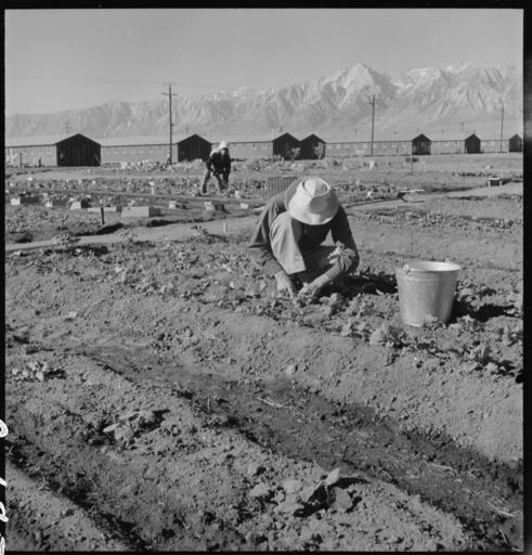 | Keywords: Manzanar Relocation Center, Manzanar, California. Evacuees of Japanese ancestry are growing flouris . . . - NARA - 537982.jpg Scope and content The full caption for this photograph reads Manzanar Relocation Center Manzanar California Evacuees of Japanese ancestry are growing flourishing truck crops for their own use in their hobby gardens These crops are grown in plots 10 x 50 feet between blocks of barracks at this War Relocation Authority center General notes 537982 Local identifier 210-G-C685 Department of the Interior War Relocation Authority 02/16/1944 - 06/30/1946 NARA-Author Lange Dorothea 1895-1965 Photographer 1372774 <br /> Still Picture Records Section Special Media Archives Services Division NWCS-S National Archives at College Park 8601 Adelphi Road College Park MD 20740-6001 1942-07-02 Record group Record Group 210 Records of the War Relocation Authority 1941 - 1989 Record group ARC 537 Central Photographic File of the War Relocation Authority compiled 1942 - 1945 Series ARC 536000 File unit File unit ARC Variant control numbers NAIL Control Number NWDNS-210-G-C685 Other versions <gallery> File Manzanar_Relocation_Center _Manzanar _California _Evacuees_of_Japanese_ancestry_are_growing_flouris_ _ _ _-_NARA_-_537982 tif tif File Manzanar_Relocation_Center _Manzanar _California _Evacuees_of_Japanese_ancestry_are_growing_flouris_ _ _ _-_NARA_-_537982 jpg jpg </gallery> NARA-cooperation PD-USGov Photographs by Dorothea Lange of Manzanar War Relocation Center |