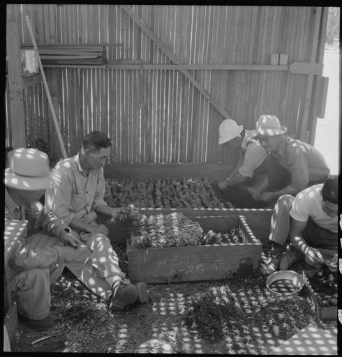 | Keywords: Manzanar Relocation Center, Manzanar, California. Guayule beds in the lath house at the Manzanar Re . . . - NARA - 538017.jpg Scope and content The full caption for this photograph reads Manzanar Relocation Center Manzanar California Guayule beds in the lath house at the Manzanar Relocation Center General notes 538017 Local identifier 210-G-C723 Department of the Interior War Relocation Authority 02/16/1944 - 06/30/1946 NARA-Author Lange Dorothea 1895-1965 Photographer 1372774 <br /> Still Picture Records Section Special Media Archives Services Division NWCS-S National Archives at College Park 8601 Adelphi Road College Park MD 20740-6001 1943-06-28 Record group Record Group 210 Records of the War Relocation Authority 1941 - 1989 Record group ARC 537 Central Photographic File of the War Relocation Authority compiled 1942 - 1945 Series ARC 536000 File unit File unit ARC Variant control numbers NAIL Control Number NWDNS-210-G-C723 Other versions <gallery> File Manzanar_Relocation_Center _Manzanar _California _Guayule_beds_in_the_lath_house_at_the_Manzanar_Re_ _ _ _-_NARA_-_538017 tif tif File Manzanar_Relocation_Center _Manzanar _California _Guayule_beds_in_the_lath_house_at_the_Manzanar_Re_ _ _ _-_NARA_-_538017 jpg jpg </gallery> NARA-cooperation PD-USGov Photographs by Dorothea Lange of Manzanar War Relocation Center Men at work in California Agriculture in California NARA images of Inyo County California Black and white photographs of sitting men Black and white photographs of California |