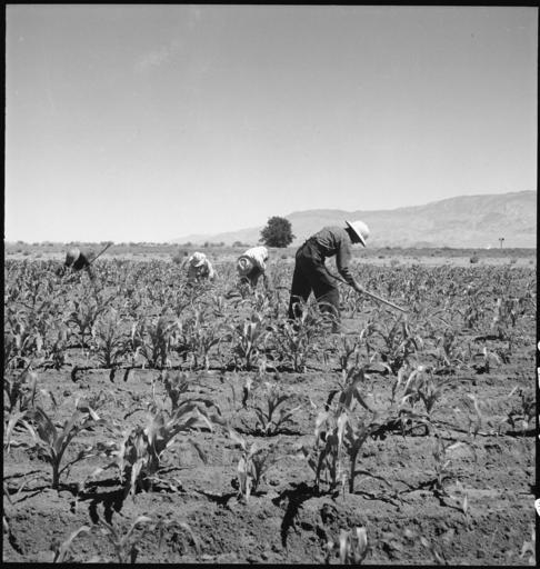 | Keywords: Manzanar Relocation Center, Manzanar, California. Hoeing corn on the farm project at this War Reloc . . . - NARA - 538052.jpg Scope and content The full caption for this photograph reads Manzanar Relocation Center Manzanar California Hoeing corn on the farm project at this War Relocation Authority center 125 acres of land have already been cleared and put into crops General notes 538052 Local identifier 210-G-C758 Department of the Interior War Relocation Authority 02/16/1944 - 06/30/1946 NARA-Author Lange Dorothea 1895-1965 Photographer 1372774 <br /> Still Picture Records Section Special Media Archives Services Division NWCS-S National Archives at College Park 8601 Adelphi Road College Park MD 20740-6001 1942-06-30 Record group Record Group 210 Records of the War Relocation Authority 1941 - 1989 Record group ARC 537 Central Photographic File of the War Relocation Authority compiled 1942 - 1945 Series ARC 536000 File unit File unit ARC Variant control numbers NAIL Control Number NWDNS-210-G-C758 Other versions <gallery> File Manzanar_Relocation_Center _Manzanar _California _Hoeing_corn_on_the_farm_project_at_this_War_Reloc_ _ _ _-_NARA_-_538052 tif tif File Manzanar_Relocation_Center _Manzanar _California _Hoeing_corn_on_the_farm_project_at_this_War_Reloc_ _ _ _-_NARA_-_538052 jpg jpg </gallery> NARA-cooperation PD-USGov Photographs by Dorothea Lange of Manzanar War Relocation Center |