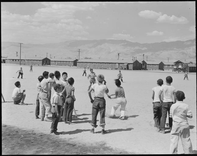 | Keywords: Manzanar Relocation Center, Manzanar, California. One of the 80 baseball teams which have been form . . . - NARA - 538060.jpg Scope and content The full caption for this photograph reads Manzanar Relocation Center Manzanar California One of the 80 baseball teams which have been formed in the three months that this War Relocation Authority center has been opened for evacuees of Japanese ancestry Most of the playing is done in the wide firebreak between blocks of barracks General notes 538060 Local identifier 210-G-C767 Department of the Interior War Relocation Authority 02/16/1944 - 06/30/1946 NARA-Author Lange Dorothea 1895-1965 Photographer 1372774 <br /> Still Picture Records Section Special Media Archives Services Division NWCS-S National Archives at College Park 8601 Adelphi Road College Park MD 20740-6001 1942-07-03 Record group Record Group 210 Records of the War Relocation Authority 1941 - 1989 Record group ARC 537 Central Photographic File of the War Relocation Authority compiled 1942 - 1945 Series ARC 536000 File unit File unit ARC Variant control numbers NAIL Control Number NWDNS-210-G-C767 Other versions <gallery> File Manzanar_Relocation_Center _Manzanar _California _One_of_the_80_baseball_teams_which_have_been_form_ _ _ _-_NARA_-_538060 tif tif File Manzanar_Relocation_Center _Manzanar _California _One_of_the_80_baseball_teams_which_have_been_form_ _ _ _-_NARA_-_538060 jpg jpg </gallery> NARA-cooperation PD-USGov Photographs by Dorothea Lange of Manzanar War Relocation Center |