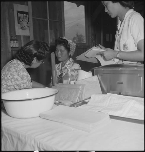 | Keywords: Manzanar Relocation Center, Manzanar, California. Young expectant mother (center) receives check-up . . . - NARA - 538142.jpg  Scope and content The full caption for this photograph reads Manzanar Relocation Center Manzanar California Young expectant mother center receives check-up from her doctor left in the medical clinic now housed in a temporary building at this War Relocation Authority Center for evacuees of Japanese ancestry General notes 538142 Local identifier 210-G-C855 Department of the Interior War Relocation Authority 02/16/1944 - 06/30/1946 NARA-Author Lange Dorothea 1895-1965 Photographer 1372774 <br /> Still Picture Records Section Special Media Archives Services Division NWCS-S National Archives at College Park 8601 Adelphi Road College Park MD 20740-6001 1942-07-03 Record group Record Group 210 Records of the War Relocation Authority 1941 - 1989 Record group ARC 537 Central Photographic File of the War Relocation Authority compiled 1942 - 1945 Series ARC 536000 File unit File unit ARC Variant control numbers NAIL Control Number NWDNS-210-G-C855 Other versions <gallery> File Manzanar_Relocation_Center _Manzanar _California _Young_expectant_mother_ center _receives_check-up_ _ _ _-_NARA_-_538142 tif tif File Manzanar_Relocation_Center _Manzanar _California _Young_expectant_mother_ center _receives_check-up_ _ _ _-_NARA_-_538142 jpg jpg </gallery> NARA-cooperation PD-USGov Photographs by Dorothea Lange of Manzanar War Relocation Center |