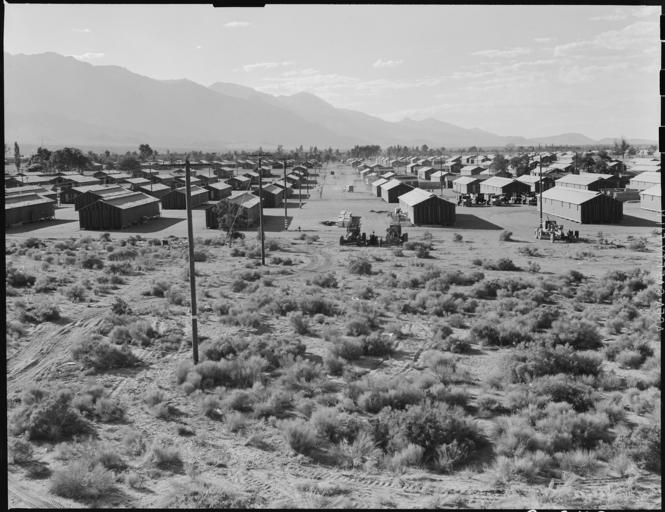 | Keywords: Manzanar Relocation Center, Manzanar, California. A view of the Manzanar Relocation center showing . . . - NARA - 538162.jpg Scope and content The full caption for this photograph reads Manzanar Relocation Center Manzanar California A view of the Manzanar Relocation center showing streets and blocks General notes 538162 Local identifier 210-G-C879 Department of the Interior War Relocation Authority 02/16/1944 - 06/30/1946 NARA-Author Lange Dorothea 1895-1965 Photographer 1372774 <br /> Still Picture Records Section Special Media Archives Services Division NWCS-S National Archives at College Park 8601 Adelphi Road College Park MD 20740-6001 1942-07-01 Record group Record Group 210 Records of the War Relocation Authority 1941 - 1989 Record group ARC 537 Central Photographic File of the War Relocation Authority compiled 1942 - 1945 Series ARC 536000 File unit File unit ARC Variant control numbers NAIL Control Number NWDNS-210-G-C879 Other versions <gallery> File Manzanar_Relocation_Center _Manzanar _California _A_view_of_the_Manzanar_Relocation_center_showing_ _ _ _-_NARA_-_538162 tif tif File Manzanar_Relocation_Center _Manzanar _California _A_view_of_the_Manzanar_Relocation_center_showing_ _ _ _-_NARA_-_538162 jpg jpg </gallery> NARA-cooperation PD-USGov Manzanar War Relocation Center 02 NARA images of Inyo County California Photographs by Dorothea Lange of Manzanar War Relocation Center Black and white photographs of California |