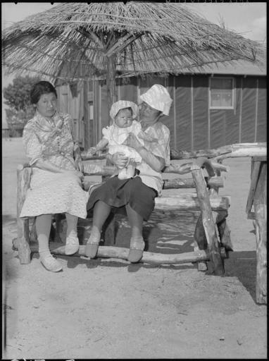 Keywords: Manzanar Relocation Center, Manzanar, California. Left to right, Mrs. T. Kakehashi, Mitsoshi Shijo, . . . - NARA - 538511.jpg Scope and content The full caption for this photograph reads Manzanar Relocation Center Manzanar California Left to right Mrs T Kakehashi; Mitsoshi Shijo 5 months old and Mrs M Shijo seated on a rustic bench undeer a twig umbrella built by George S Takemura landscape artist from West Los Angeles California These evauees of Japanese ancestry are being housed for the duration at Manzanar a War Relocation Authority center General notes 538511 Local identifier 210-G-D543 Department of the Interior War Relocation Authority 02/16/1944 - 06/30/1946 NARA-Author Stewart Francis War Relocation Authority photographer Photographer 8464475 <br /> Still Picture Records Section Special Media Archives Services Division NWCS-S National Archives at College Park 8601 Adelphi Road College Park MD 20740-6001 1942-05-31 Record group Record Group 210 Records of the War Relocation Authority 1941 - 1989 Record group ARC 537 Central Photographic File of the War Relocation Authority compiled 1942 - 1945 Series ARC 536000 File unit File unit ARC Variant control numbers NAIL Control Number NWDNS-210-G-D543 Other versions <gallery> File Manzanar_Relocation_Center _Manzanar _California _Left_to_right _Mrs _T _Kakehashi _Mitsoshi_Shijo _ _ _ _-_NARA_-_538511 tif tif File Manzanar_Relocation_Center _Manzanar _California _Left_to_right _Mrs _T _Kakehashi _Mitsoshi_Shijo _ _ _ _-_NARA_-_538511 jpg jpg </gallery> NARA-cooperation PD-USGov Manzanar War Relocation Center |