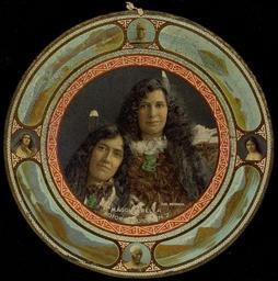 Keywords: MaoriPlate.jpg en From the National Library of New Zealand Shows a head and shoulders double portrait of Rotorua guides Maggie Papakura and Bella Te Hoari Papakura in traditional Maori costume feather cloaks huia feather in the hair tiki pendants The rim decoration shows Lake Taupo Lake Rotorua Lake Manapouri Lake Wanaka and four other Maori portraits The original photographic portrait was taken by Arthur Iles Rotorua photographer Title Iles Arthur James 1870-1943 Maggie Bella Rotorua guides Published for Iles Rotorua by George Hadfield Wellington N Z Between 1901 and 1905 Johnston L A Mrs fl 1957 Iles Arthur James 1870-1943 Maggie Bella Rotorua guides Published for Iles Rotorua by George Hadfield Wellington N Z Between 1901 and 1905 Iles Arthur James 1870-1943 Four tin plates depicting Maori portraits and New Zealand scenes Published for Iles Rotorua by George Hadfield Wellington N Z ca 1901-1905 Ref Curios-013-003-1 Alexander Turnbull Library Wellington New Zealand http //natlib govt nz/records/22481296 2014-10-16 20 08 12 http //natlib govt nz/records/22481296 searchpath items searchtext Curios-013-003-1 Iles Arthur James; National Library of New Zealand other versions PD-New Zealand PD-old-70-1923 Uploaded with UploadWizard Portrait photographers Plates People of Maori descent |