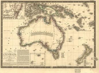 | Keywords: Map of Australia WDL56.png Artwork ru Б ю Ад иен Юбе 1786-1832 fr Brué Adrien Hubert 1786-1832 en Brué Adrien Hubert 1786-1832 zh 布鲁 阿德里安·休伯特 1786-1832 pt Brué Adrien Hubert 1786-1832 ar بروي أدريان هوبير 1786-1832 es Brué Adrien Hubert 1786-1832 ru Ка та Авст алии fr Carte de l'Australie en Map of Australia zh 澳大利亚 图 pt Mapa da Austrália ar خريطة أستراليا ru Ад иэн Б юэ 1786-1832 соп овождал ф анцузского исследователя иколя Бодина в его путешествии в Авст алию в 1803 году Бодин описывает Б юэ как молодого человека п иятного н ава и ст астно увлеченного геог афией в его честь он назвал иф Б юэ находящийся к севе о-западу от побе ежья Авст алии Б юэ возв атился во Ф анцию где он впоследствии стал ко олевским геог афом и выдающимся издателем ка т наилучшего качества В под обных п имечаниях к данной ка те изготовленной в 1826 году указываются источники на кото ых она основана Б юэ называет Авст алию овой Голландией впе вые названной таким об азом голландским исследователем Абелем Тасманом в 1644 году Лишь в XIX векеназвание Авст алия получило ши окое асп ост анение fr Adrien Brué 1786-1832 accompagna l'explorateur français Nicolas Baudin en 1803 pendant son voyage vers l'Australie Baudin décrivit Brué comme « un jeune homme bien disposé et rempli de zèle pour la géographie » et il nomma le récif de Brué au large de la côte nord-ouest de l'Australie en son honneur Brué retourna en France pour devenir le géographe royal et un éditeur important de cartes de grande qualité Les notes détaillées sur cette carte de 1826 identifient ses sources Brué appelle l'Australie « la Nouvelle-Hollande » nom qui lui fut donné en 1644 par l'explorateur hollandais Abel Tasman Ce n'est qu'au XIXe siècle que le nom d'Australie se généralisa en Adrien Brué 1786-1832 accompanied the French explorer Nicolas Baudin on his 1803 voyage to Australia Baudin described Brué as a young man of good disposition and with a zeal for geography and named the Brué Reef off Australia s northwestern coast in his honor Brué returned to France to become the royal geographer and an important publisher of high-quality maps The detailed notes on this 1826 map identify its sources Brué calls Australia New Holland the name first given to it in 1644 by the Dutch explorer Abel Tasman Only in the 19th century did the name Australia come into general use zh Adrien Brué(1786-1832 年)与法国探险家尼古拉斯·博丹 起参加了他的 1803 年澳大利亚 航 博丹对 Brué 的描述是 他是 位脾气好 且对 理充满热情的年轻人 ,并且将澳大利亚西北海岸外的 处暗礁命名为 Brué 礁,以表示对他的敬意 Brué 回到法国,成为了 名皇家 理学家和 位出版高品质 图的重要出版商 这幅 1826 年 图上的详细说明指明了该 图的 源 Brué 将澳大利亚称为 新荷兰 ,澳大利亚的这 名称是 1644 年荷兰探险家阿 尔·塔斯曼首次使用的 直到 18 世纪,澳大利亚这 名称才被普遍使用 pt Adrien Brué 1786-1832 acompanhou o explorador francês Nicolas Baudin em sua viagem de 1803 para a Austrália Baudin descrevia Brué como um rapaz de boa disposição e com um entusiasmo pela geografia e em sua homenagem chamou de Brué o Recife ao longo da costa noroeste da Austrália Brué regressou à França para tornar-se o geógrafo real e um importante editor de mapas de alta qualidade As notas pormenorizadas deste mapa de 1826 identificam suas fontes Brué chama a Austrália de Nova Holanda o primeiro nome dado em 1644 pelo explorador holandês Abel Tasman Somente no século XIX é que o nome Austrália entrou em uso geral ar رافق أدريان بروي 1786-1832 المستكشف الفرنسي نيكولاس بودين في رحلته إلى أستراليا عام 1803 وصف بودين بروي بأنه شاب حسن التصرف ومتحمس للجغرافيا ، وسمى الحيد البحري بروي ريف قبالة الساحل الشمالي الغربي لأستراليا على شرفه عاد بروي إلى فرنسا ليصبح الجغرافي الملكي وناشرا مهما لخرائط عالية الجودة وتدرج الملاحظات التفصيلية المصادر التي استندت عليها هذه الخريطة من عام 1826 ويسمي بروي أستراليا هولندا الجديدة ، وهو الاسم الذي أُعطي لأستراليا أولا في 1644 من قبل المستكشف الهولندي أبيل تاسمان لم يُدرجاسم أستراليا في الاستعمال العام إلا في القرن التاسع عشر es Adrien Brué 1786-1832 acompañó al explorador francés Nicolas Baudin en su viaje a Australia en 1803 Baudin describió a Brué como «un joven de buena disposición y con gran celo por la geografía» y bautizó el arrecife situado en la costa noroccidental australiana Arrecife Brué en su honor Brué volvió a Francia para convertirse en el geógrafo real y en un importante editor de mapas de alta calidad Las notas detalladas de este mapa de 1826 identifican sus fuentes Brué llama a Australia «Nueva Holanda» el nombre que en 1664 le diera por primera vez el explorador holandés Abel Tasman No sería hasta el siglo XIX cuando el nombre de Australia se volvería de uso general 1826 ru Ка ты 
