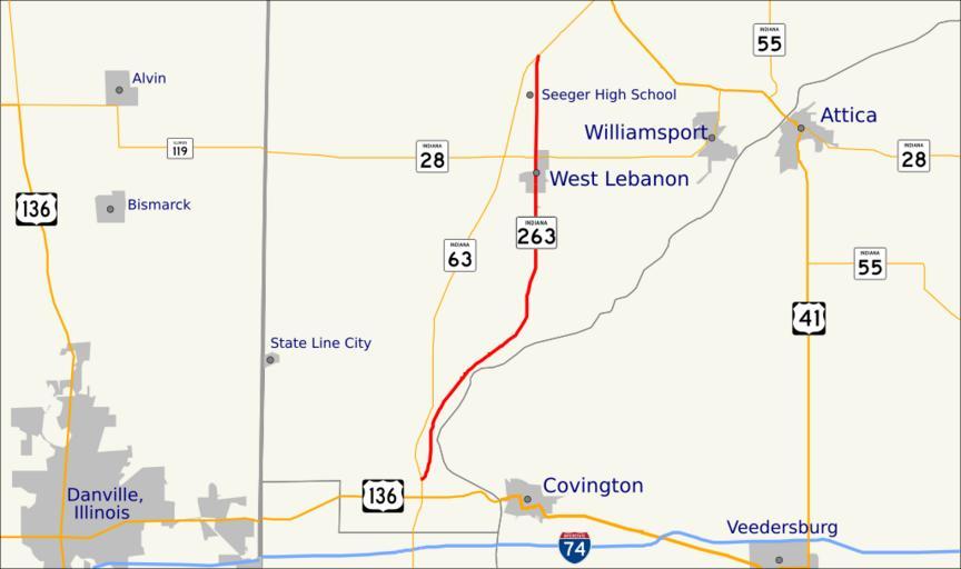 Keywords: Map of Indiana State Road 263.svg This is a map which shows the route of Indiana State Road 263 in the United States My own work using freely-available shape data and custom-written MapScript applications 2008-03-03 Omnedon Road maps of Indiana SR263 |