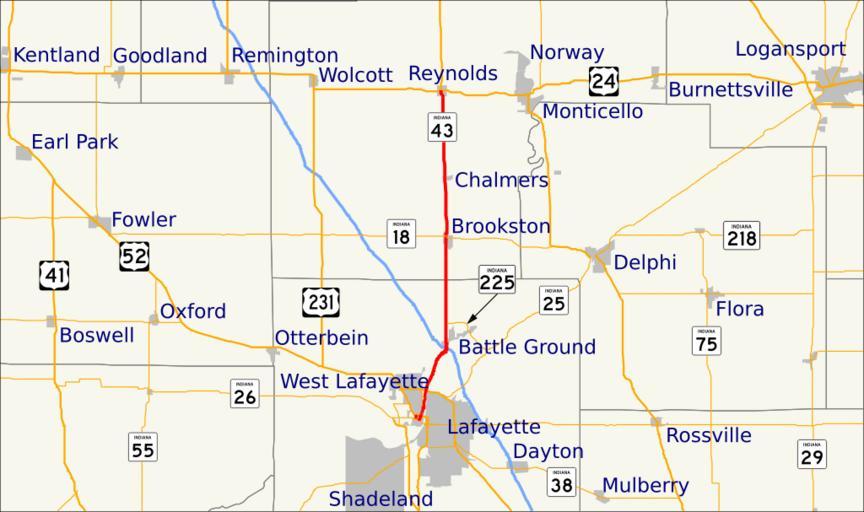 | View Original: | Map of Indiana State Road 43 (north).svg (870x516) | |||