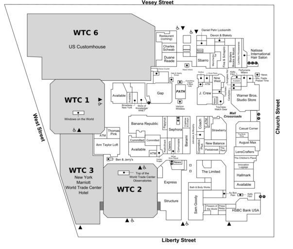 Keywords: Map of the Mall at the World Trade Center.svg Map of the Mall at the World Trade Center The_Mall_at_the_World_Trade_Center_map png 2011-02-14 23 05 UTC The_Mall_at_the_World_Trade_Center_map png Created by en National Institute of Standards and Technology; originally uploaded by TheListUpdater SVG version Makeemlighter Vector text versions Map of the Mall at the World Trade Center modifiable svg Converted to SVG Makeemlighter The_Mall_at_the_World_Trade_Center_map png PD-USGov Original upload log This image is a derivative work of the following images File The_Mall_at_the_World_Trade_Center_map png licensed with Cc-pd-mark-footer PD-USGov 2011-02-07T03 45 39Z File Upload Bot Magnus Manske 936x843 194061 Bytes <nowiki> en wikipedia subst CURRENTYEAR subst CURRENTMONTHNAME subst CURRENTDAY Prepared by the National Institute of Standards and Technology according </nowiki> Uploaded with derivativeFX Maps and diagrams of the World Trade Center complex 1970 “2001 |