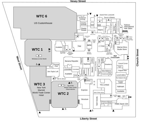 Keywords: Map of the Mall at the World Trade Center (modifiable).svg the Mall at the World Trade Center The_Mall_at_the_World_Trade_Center_map png The_Mall_at_the_World_Trade_Center_map png Created by en National Institute of Standards and Technology; originally uploaded by TheListUpdater SVG version Makeemlighter 2011-02-14 Vector text versions Map of the Mall at the World Trade Center svg Converted to SVG Makeemlighter The_Mall_at_the_World_Trade_Center_map png PD-USGov Maps and diagrams of the World Trade Center complex 1970 “2001 |