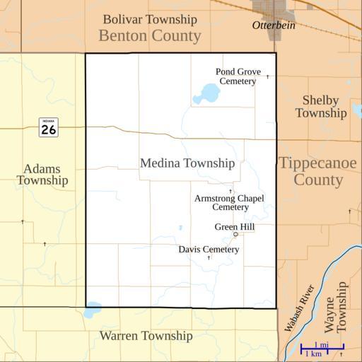 | Keywords: Map of Medina Township, Warren County, Indiana.svg This is a map of Medina Township Warren County Indiana USA My own work using custom-written MapScript applications with http //www census gov/geo/www/tiger/tgrshp2010/tgrshp2010 html United States Census Bureau TIGER 2010 data 2011-01-26 Omnedon Maps of Warren County Indiana Maps by User Omnedon |