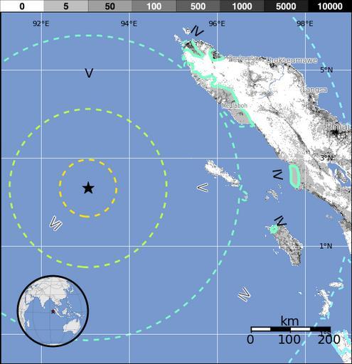 Keywords: Mapa terremoto de Indonesia de 2012.png es El terremoto del océano Índico de 2012 fue un terremoto de magnitud 8 6 grados en la escala de magnitud de momento que sacudió a Indonesia Tailandia Malasia Sri Lanka India Bangladesh Vietnam Maldivas y Singapur Además obligó a emitir una advertencia de tsunami para 20 países debido a la magnitud del sismo y una posterior réplica de 8 2 grados en la escala de magnitud de momento 2012-04-11 http //earthquake usgs gov/earthquakes/pager/events/us/c000905e/exposure png USGS PD-USGov Uploaded with UploadWizard Earthquake maps |
