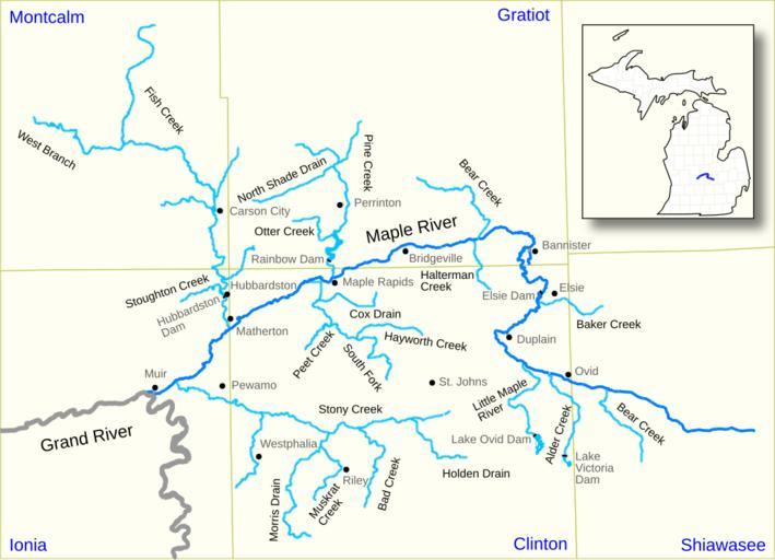 Keywords: Maple River (Grand River Watershed) Map US MI.svg Maple River in the Grand River Watershed in Michigan USA Self-made using OpenJUMP with http //www mcgi state mi us/mgdl/ rel ext action sext State of Michigan GIS data and Inkscape Bamyers99 <span class signature-talk >talk</span> 2011-02-11 Cc-zero Maps of rivers in Michigan |