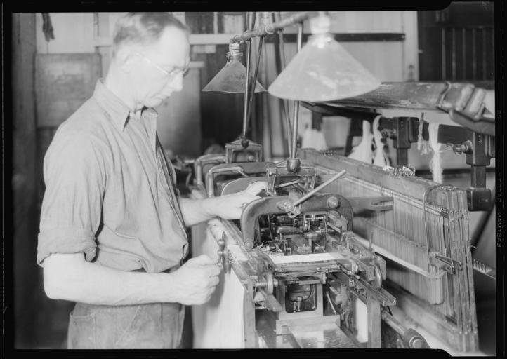 | Keywords: nara:arcid=518755 u.s. national archives usnationalarchives lewis hine lewishine the great depression thegreatdepression work portraits workportraits works progress administration worksprogressadministration manchester new hampshire newhampshire 1937 blackandwhite monochrome photo border black and white Original Caption: Manchester, New Hampshire - Textiles. Pacific Mills. Marber-Colman Automatic Warp tying machine. Knot tyer for warp. Ties 250 knots a minute. Can run up to 6000 warp threads. Operator tending-Fully Automatic, April 1937 U.S. National Archives’ Local Identifier: 69-RP-617 Photographer: Hine, Lewis Subjects: The New Deal Tennessee Valley Authority Works Progress Administration Work Portraits The Great Depression Persistent URL: research.archives.gov/description/518755 Repository: Still Picture Records Section, Special Media Archives Services Division (NWCS-S), National Archives at College Park, 8601 Adelphi Road, College Park, MD, 20740-6001. For information about ordering reproductions of photographs held by the Still Picture Unit, visit: www.archives.gov/research/order/still-pictures.html Reproductions may be ordered via an independent vendor. NARA maintains a list of vendors at www.archives.gov/research/order/vendors-photos-maps-dc.html Access Restrictions: Unrestricted Use Restrictions: Unrestricted Original Caption: Manchester, New Hampshire - Textiles. Pacific Mills. Marber-Colman Automatic Warp tying machine. Knot tyer for warp. Ties 250 knots a minute. Can run up to 6000 warp threads. Operator tending-Fully Automatic, April 1937 U.S. National Archives’ Local Identifier: 69-RP-617 Photographer: Hine, Lewis Subjects: The New Deal Tennessee Valley Authority Works Progress Administration Work Portraits The Great Depression Persistent URL: research.archives.gov/description/518755 Repository: Still Picture Records Section, Special Media Archives Services Division (NWCS-S), National Archives at College Park, 8601 Adelphi Road, College Park, MD, 20740-6001. For information about ordering reproductions of photographs held by the Still Picture Unit, visit: www.archives.gov/research/order/still-pictures.html Reproductions may be ordered via an independent vendor. NARA maintains a list of vendors at www.archives.gov/research/order/vendors-photos-maps-dc.html Access Restrictions: Unrestricted Use Restrictions: Unrestricted |