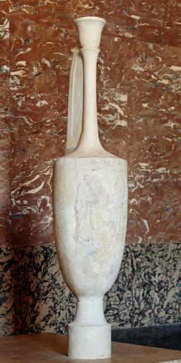 Keywords: Marble lekythos Louvre Ma3403.jpg Marble funerary lekythos Pentelic marble ca 400 BC found between Athens and the Cape of Sounion Lécythe funéraire en marbre Marbre du Pentélique v 400 av J -C découvert entre Athènes et le cap Sounion H 83 cm 32 ½ in Museum Louvre Department of Greek Etruscan and Roman antiquities Denon ground floor room 31 20216 object history credit line Purchase 1898 accession number Ma 3403 MNC 2281 Jastrow 2006 other versions Greek antiquities in the Louvre - Room 31 Death in ancient Greece Marble lekythoi Pentelic marble sculptures |