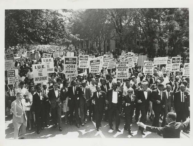 MAKE A MEME View Large Image March on Washington for Jobs and Freedom, Martin Luther King, Jr. and Joachim Prinz pictured, 1963 Photographer: unknown Date: 1963 Medium: Black and white photograph Repository: American Jewish Historical Society Parent Collection: ...