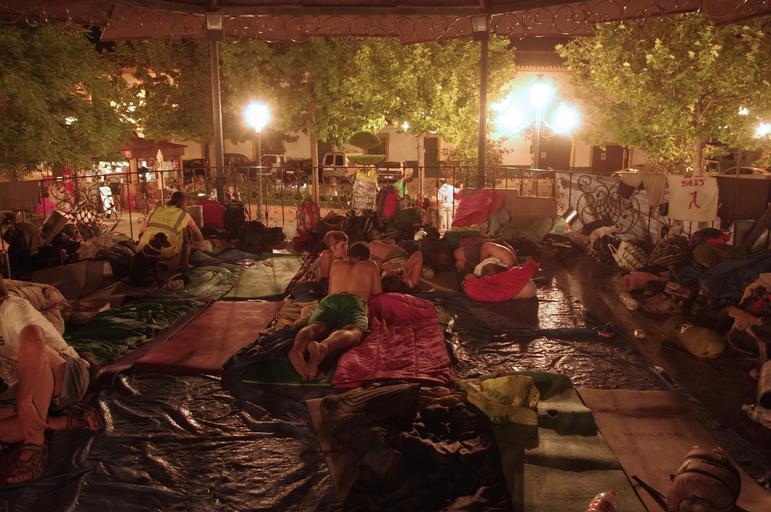 Keywords: Marcha indignada - Noche en la plaza 001.JPG es La marcha indignada la columna Cadiz-Sevilla pernocta en la plaza de Villarubia de los Ojos own Nemo 2011-07-17 Cc-zero Marcha indignada Vivencias