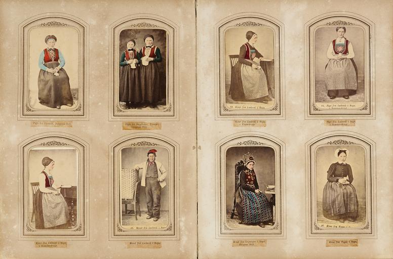Keywords: marcus selmer preus museum preusmuseum indoor Album, Visittkort Marcus Selmer, NMFF.000912-9 Tittel: 14. Kone fra Landik i Sogn i sommerdragt Tittel: 15. Mand fra Landik i Sogn Tittel: Brud fra Leanger i Sogn. Bergen Stift Tittel: 97. Kone fra Vigør i Sogn Tittel: 12. Kone fra Landvik i Sogn i vinterdragt Tittel: Pige fra Tysnes, Bergens Stift Tittel: Pige fra Onarheim, Bergens Stift Album, Visittkort Marcus Selmer, NMFF.000912-9 Tittel: 14. Kone fra Landik i Sogn i sommerdragt Tittel: 15. Mand fra Landik i Sogn Tittel: Brud fra Leanger i Sogn. Bergen Stift Tittel: 97. Kone fra Vigør i Sogn Tittel: 12. Kone fra Landvik i Sogn i vinterdragt Tittel: Pige fra Tysnes, Bergens Stift Tittel: Pige fra Onarheim, Bergens Stift Album, Visittkort