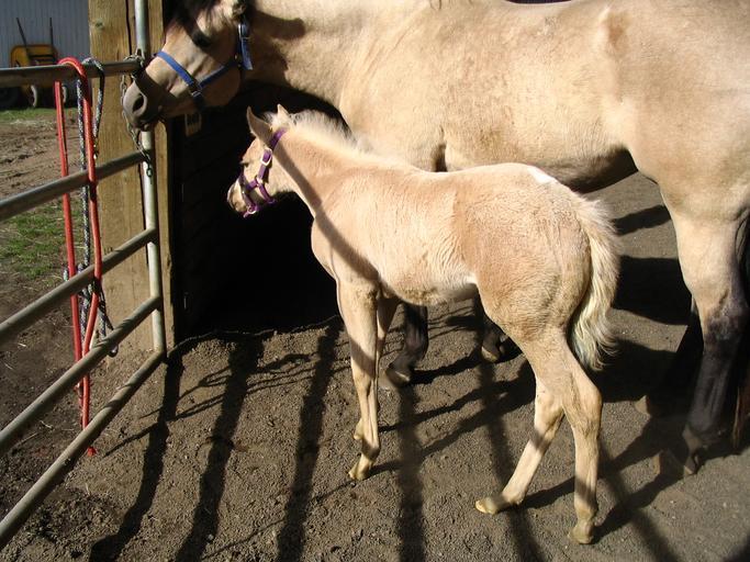 | Keywords: horses buckskin mare palomino colt The palomino colt, named Bear, is about 5 weeks old in this picture. CC0 waiver: To the extent possible under law, I waive all copyright and related or neighboring rights to this work. The palomino colt, named Bear, is about 5 weeks old in this picture. CC0 waiver: To the extent possible under law, I waive all copyright and related or neighboring rights to this work. | ||||