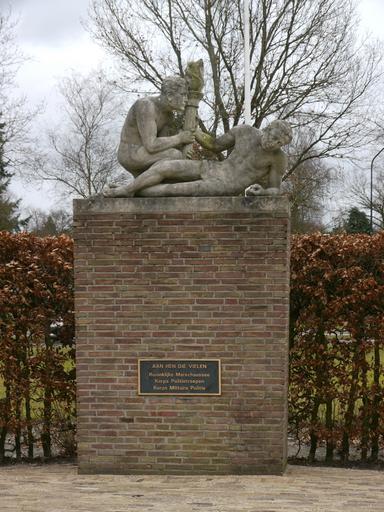 | Keywords: Marechausseemonument - Henk Etienne (Apeldoorn).jpg nl Marechausseemonument 1949 gemaakt door Henk Etienne Bakstenen sokkel met natuurstenen sculptuur Herdenkt hen die vielen in de tweede wereldoorlog van Koninklijke Marechausse Korps Politietroepen en Korps Militaire Politie Beeldt een stervende man uit die de vlam van de vrede overdraagt op een andere man own Erik Wannee 2011-02-05 Apeldoorn Frankenlaan tegenover Koning Willem III kazerne 1720 Statues in Apeldoorn World War II memorials in Apeldoorn Henk Etienne Koning Willem III kazerne Cc-zero |
