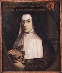 Keywords: Margaret of Lorraine.jpg Marguerite de Lorraine duchesse d' Alençon + 1521 Margaret of Lorraine century 19 Oil on canvas cm 63 5 53 5 Musée Louis-Philippe Eu 07140000974 other versions PD-old-100 19th-century unidentified painters Château d'Eu Margaret of Lorraine 1463-1521 Coat of arms of the Capetian counts of Alençon Coats of arms of House of Lorraine Cords in heraldry Portrait paintings of females with skulls Uploaded with UploadWizard |