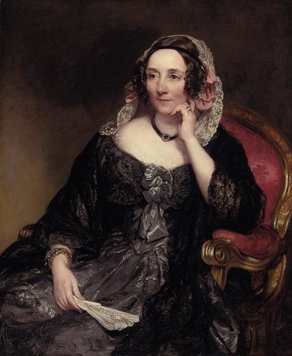 | Keywords: Margaret Sarah Carpenter - Selina, Lady Fitzwygram.jpg en Portrait of Selina Lady Fitzwygram née Hayes seated in an armchair in a blue dress with a black lace shawl and lace headdress holding a fan oil on canvas 99 2 x 81 3 cm http //www christies com/LotFinder/lot_details aspx from searchresults intObjectID 5365454 sid a410d8ad-0d50-4317-8e02-0a44b40bb04a Christie's Margaret Sarah Carpenter Salisbury 1793-1872 London 1850 PD-Art Margaret Carpenter Sitting people Portraits of people thinking |