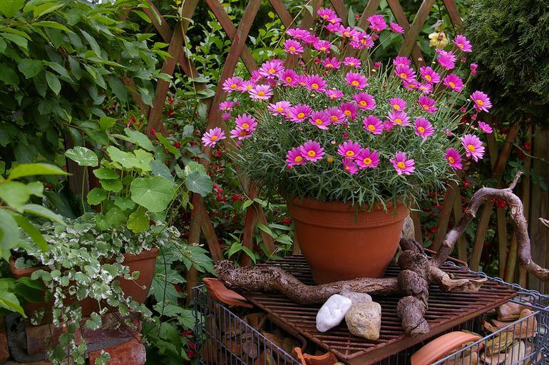 Keywords: margaritte flowerpot terracotta fired clay deco garden plant decorative pink road potsherds
