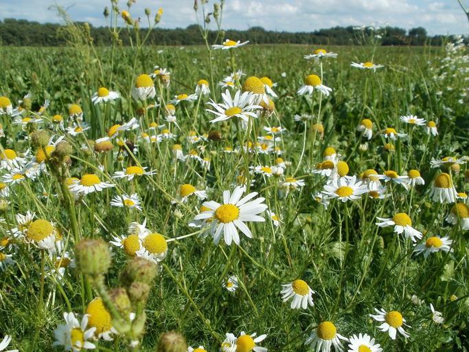 Keywords: marguerites flowers daisies fields nature summer spring green meadow landscape grass season outdoors environment blossom sunlight bright garden scene tranquil countryside farm botany