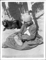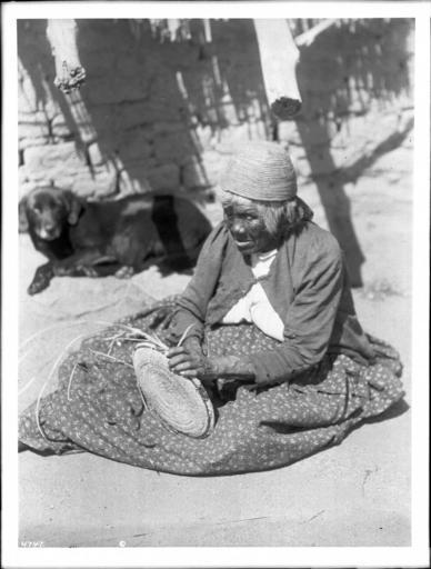 | Keywords: Maria Casseri, a Coahuilla Indian basket maker, at work, California, ca.1899 (CHS-4747).jpg en <br> Maria Casseri a Coahuilla Indian basket maker at work California ca 1899 Photograph of a Maria Casseri a Coahuilla Indian basket maker at work California ca 1899 She can be seen sitting on the ground weaving a partially completed basket She is visible wearing a long-sleeved sweater with a white shirt underneath and printed skirt She has short white hair with a basket on her head A dog sits behind her to the left near a stone wall Call number CHS-4747 Photographer James George Wharton Filename CHS-4747 Coverage date circa 1899 Part of collection California Historical Society Collection 1860-1960 Format glass plate negatives Type images Part of subcollection Title Insurance and Trust and C C Pierce Photography Collection 1860-1960 Repository name USC Libraries Special Collections Accession number 4747 Microfiche number 1-172- Archival file chs_Volume98/CHS-4747 tiff Repository address Doheny Memorial Library Los Angeles CA 90089-0189 Geographic subject country USA Format aacr2 3 photographs glass photonegative photoprints b w ; 22 x 17 cm 21 x 26 cm Rights Digitally reproduced by the USC Digital Library; From the California Historical Society Collection at the University of Southern California Subject adlf tribal areas Project USC Repository email specol usc edu Identifying number unidentified no James-2012 Contributing entity California Historical Society Date created circa 1899 Publisher of the digital version University of Southern California Libraries Format aat photographic prints; photographs Geographic subject state California Legacy record ID chs-m17056; USC-1-1-1-13920 Access conditions Send requests to address or e-mail given Phone 213 821-2366; fax 213 740-2343 Subject file heading Indians -- Mission -- Cahuilla Subject lcsh Indians of North America; Cahuilla Indians Subject Mission Indians; Cahuilla Indians; Casseri Maria; Coahuilla Indians; Mission Indians circa 1899 date created James George Wharton http //digitallibrary usc edu/cdm/ref/collection/p15799coll65/id/17069 PD-old-70-1923 Images from USC Digital Library uploaded by Fæ California Historical Society Collection 1860-1960 Glass plate negatives Cahuilla Cahuilla baskets Photographs by George Wharton James |
