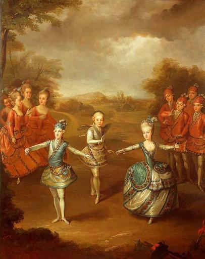 | Keywords: Marie Antoinette Dancing.jpg Archduchess Maria Antonia of Austria the later Queen Marie Antoinette of France is dancing ballet with her brothers Archduke Ferdinand of Austria and Archduke Maximilian Franz of Austria on a Fête organized to celebrate the marriage of the Holy Roman Emperor Joseph II to Princess Marie-Josèphe of Bavaria 23/24 January 1765 Oil on Canvas 72 x 57 inches 183 x 145 cm 1765 Hofburg Vienna http //www europeanpaintings com/index_af_his asp numcol 5 Uploaded 13/08/2006 Attributed to Johann Georg Weickert PD-old PD-old Marie Antoinette of Austria as a child 18th-century dancers |