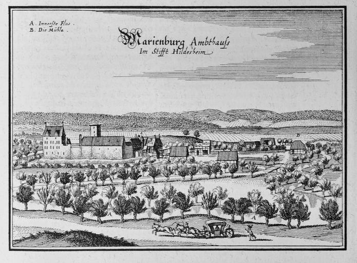 Keywords: Marienburg (Merian).jpg Artwork creator Matthäus Merian Marienburg Hildesheim Niedersachsen Deutschland b 1653 copper engraving object history exhibition history credit line de accession number Topographia Saxoniae Inferioris Frankfurt am Main 1653 PD-100 Engravings of Topographia Saxoniae Inferioris Marienburg Hildesheim |