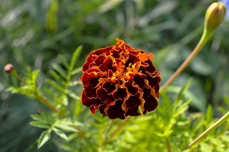 Keywords: marigold flower green nature plant garden leaves summer vinous