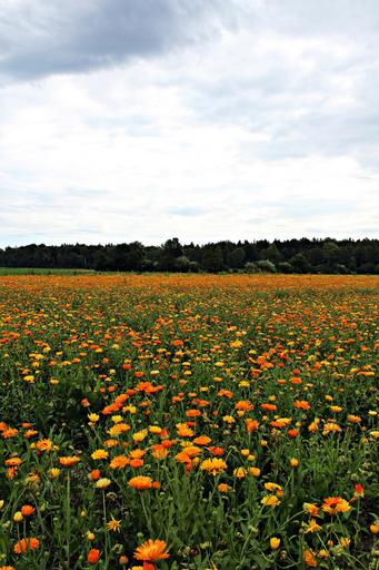 Keywords: marigold marigold field nature medicinal plant summer botany herbal medicine yellow flora bless you