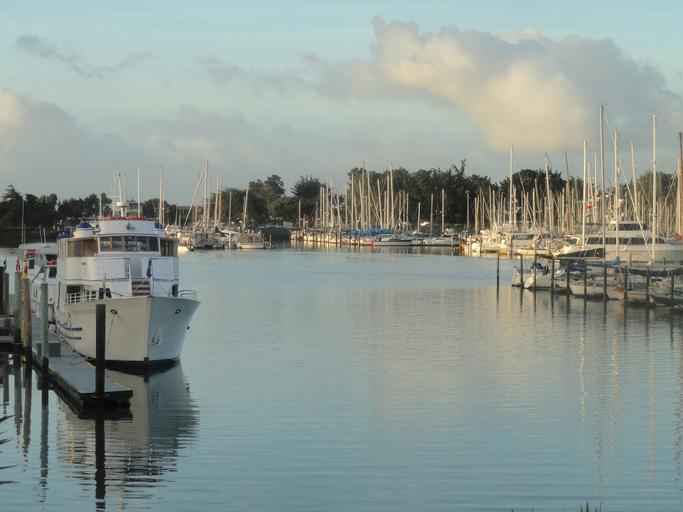 Keywords: marina sea boats ships yachts pier vessels reflection water port sunset twilight coast evening dusk landscape scenic berkeley california usa america