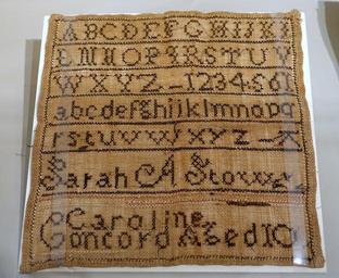 | Keywords: Marking sampler, Sarah A. Stow, Concord, early 1800s, linen - Concord Museum - Concord, MA - DSC05867.JPG en Exhibit in the Concord Museum Concord Massachusetts USA 2014-12-30 14 22 32 own Daderot other versions PD-old-100 cc-zero Textiles in the Concord Museum 1800s samplers |