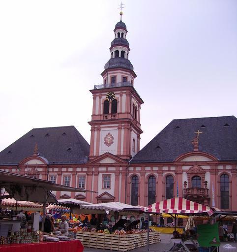 Keywords: Marktplatz Mannheim.jpg market square of Mannheim Germany 2006-02-25 own Immanuel Giel G-Quadrate F-Quadrate Marktplatz Mannheim Altes Rathaus Mannheim St Sebastian Mannheim