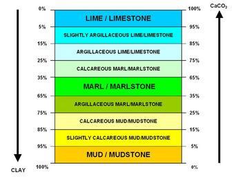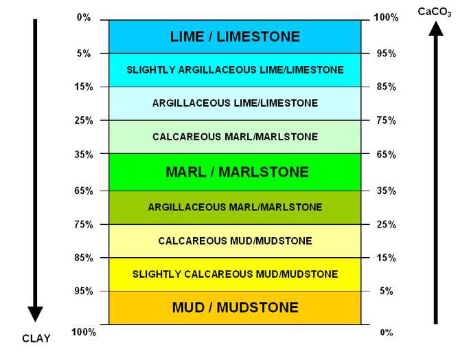 Keywords: Marl vs clay & lime EN.PNG en Scheme of transitional lithotypes from MUD or MUDSTONE to LIME or LIMESTONE own Foxbat deinos 2010-01-23 Sedimentary rocks Sedimentology diagrams