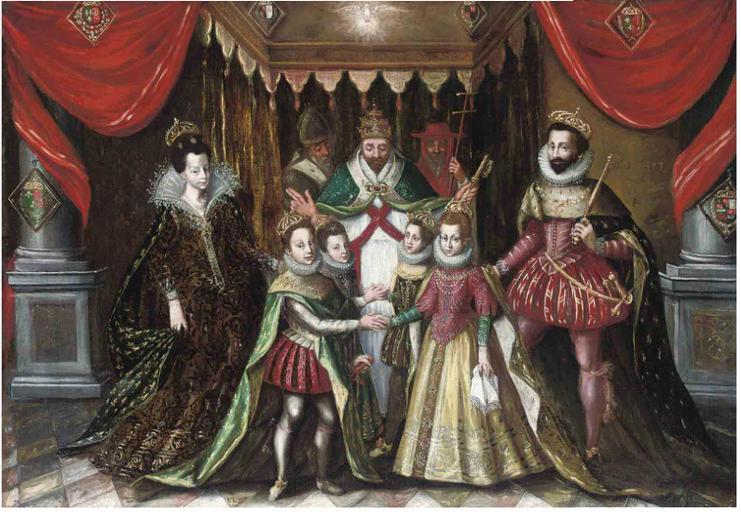 Keywords: Marriage of Louis XIII by follower of A. Sanchez Coello.jpg Follower of Alonso Sánchez Coello The double marriage of Louis XIII of France with Anne of Austria and Philip Prince of Asturias with Elizabeth of France oil on canvas 33 5/8 x 48 in 85 5 x 122 cm http //www christies com/lotfinder/paintings/follower-of-alonso-sanchez-coello-the-double-5461365-details aspx This double marriage took place in 1615 Follower of Alonso Sánchez Coello Wedding of Louis XIII of France and Anne of Austria Files uploaded by Shakko from various sources Alonso Sánchez Coello Unidentified locations in Christchurch PD-old |