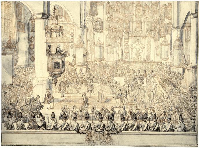 | Keywords: Marriage of prince Karl Christian of Nassau-Weilburg with princess Carolina of Orange-Nassau.jpg nl Huwelijksceremonie van prins Karel Christiaan van Nassau-Weilburg met prinses Carolina van Oranje-Nassau 5 maart 1760 Interieur van de Grote Kerk te Den Haag met alle gasten de dominee spreekt het paar toe Bij het bruidspaar staat de jonge prins Willem V van Oranje-Nassau met zijn voogd de hertog van Brunswijk Onderaan de wapens van het bruidspaar Ontwerp voor een prent en Wedding ceremony of Prince Charles Christian of Nassau-Weilburg and Princess Carolina of Orange-Nassau 5 March 1760 Interior of the Great Church in The Hague with all the guests the reverend speaks to the couple Near the couple the young Prince William V of Orange-Nassau with his guardian the Duke of Brunswick At the bottom the coat of arms of the couple Design for a print de Hochzeitszeremonie des Prinzen Karl Christian von Nassau-Weilburg und Prinzessin Carolina von Oranien-Nassau 5 März 1760 Innenansicht der Grosse Kirche in Den Haag mit allen Gästen spricht der Pfarrer für das Paar Neben das Paar der junge Prinz Wilhelm V von Oranien-Nassau mit seinem Vormund der Herzog von Braunschweig Unten die Arme des Paares Entwurf für einen Druck fr La cérémonie de mariage du Prince Charles Christian de Nassau-Weilbourg et la princesse Caroline d'Orange-Nassau le 5 Mars 1760 Intérieur de la Grand Église à La Haye avec tous les invités le ministre parle du couple Dévant le couple le jeune prince Guillaume V d'Orange-Nassau avec son tuteur le duc de Brunswick Bas les armes du couple Conception pour une impression 1760 Rijksmuseum Amsterdam - Object number RP-T-00-2052 Creator Tethart Philipp Christian Haag cc-zero Uploaded with UploadWizard Tethart Philipp Christian Haag Charles Christian Prince of Nassau-Weilburg Carolina of Orange-Nassau 18th-century people of the Netherlands 18th-century people of Germany 18th-century group portraits The Hague in the 1760s Prints and drawings of The Hague Grote of Sint-Jacobskerk The Hague |