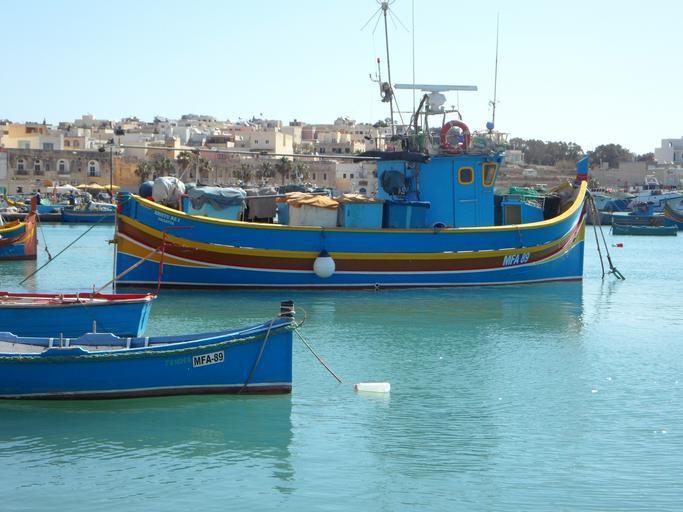 Keywords: marsaxlokk port malta boats fishing boats fishing sea mediterranean cutter