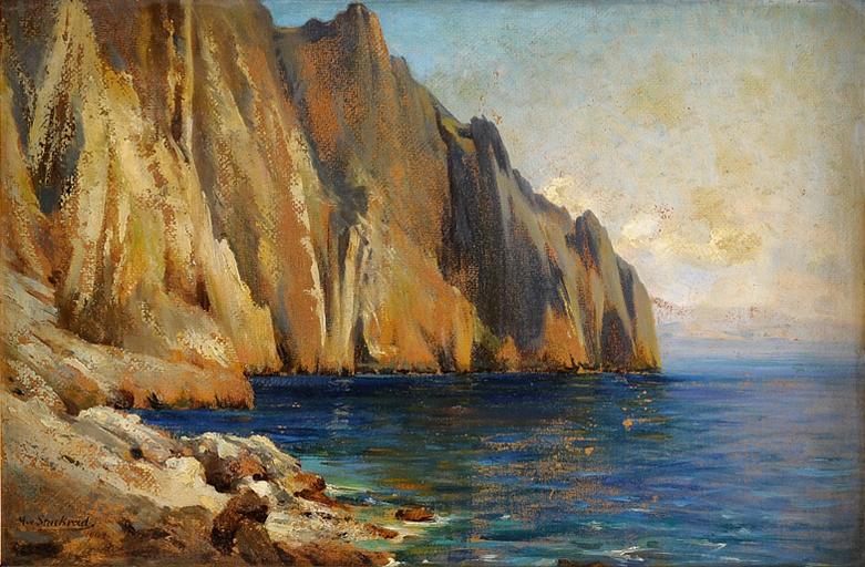 | Keywords: Martha von Stuckrad Felsenküste Capri 1909.jpg Capri Signiert Datiert 1909 Rückseite betitelt Öl auf Malkarton 33 x 50 cm http //www duesseldorfer-auktionshaus de/ Düsseldorfer Auktionshaus 1909 Creator Martha von Stuckrad PD-old-70-1923 Images from Düsseldorfer Auktionshaus Martha von Stuckrad Paintings of Capri 1909 paintings |