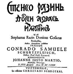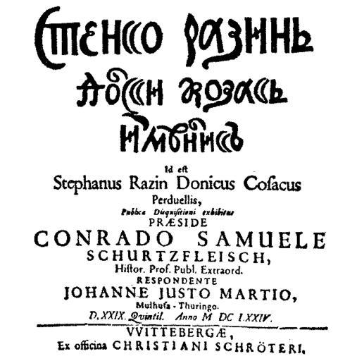 Keywords: Martius-Dissertation-on-Razin-titlepage.png ru Титульная ст аница диссе тации И Ю а циуса 1674 о восстании Степана Разина en J J Martius Stenko Razin' Donski Kozak' izměnnik id est Stephanus Razin Donicus Cosacus perduellis Dissertation on Stepan Razin 1674 Title page 2012-01-29 facsimile Schrödter 1674 PD-Art Uploaded with UploadWizard Stepan Razin Title pages from Germany 1674 in Germany