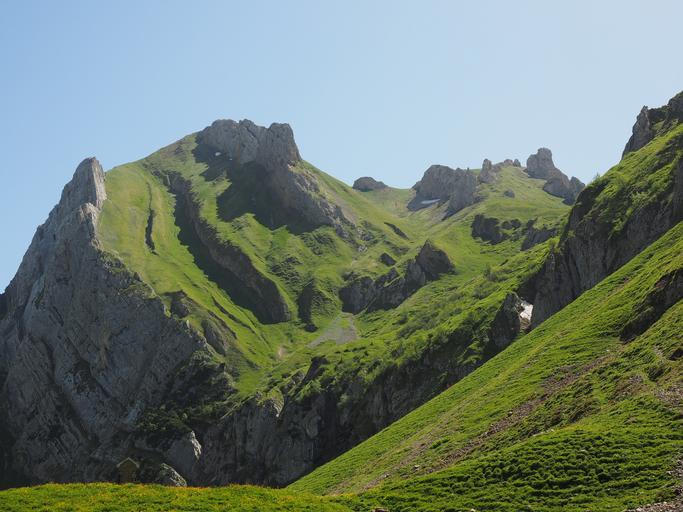 Keywords: marwees mountains alpine säntis region meglisalp grassy slope ridge