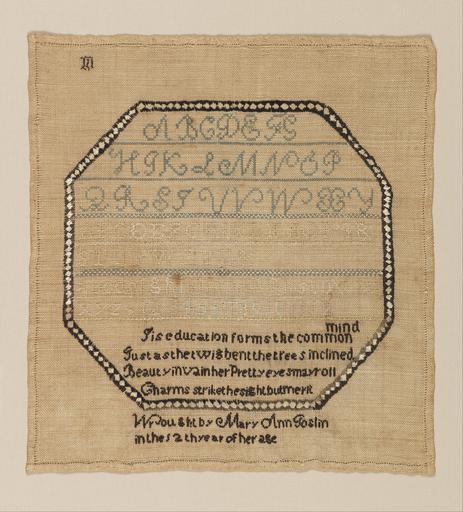 Keywords: Mary Ann Goslin - Sampler - Google Art Project.jpg Mary 6825710 Ann Goslin /collection/cooper-hewitt-national-design-museum/artwork/sampler-mary-ann-goslin/6815744/ 155634 Mary Ann Goslin /artist/mary-ann-goslin/12688870/ 12688870 /collection/cooper-hewitt-national-design-museum/ Cooper-Hewitt National Design Museum 3644669 http //www cooperhewitt org/ /collection/cooper-hewitt-national-design-museum/artwork/sampler-mary-ann-goslin/6815744/ 1800 early 19th century Medium silk embroidery on linen foundationTechnique embroidered in counted cross half cross and satin stitches on plain weave foundation Ex coll Fraser-Martin Donor's Notes Purchased in Ipswich New Hampshire on the Green in 1928 6815744 False 1825 1976-100-24 http //collection cooperhewitt org/view/objects/asitem/id/155634 Gift of Anonymous Donor from the Fraser/Martin Collection Sampler 1800 1830 early 19th century False 0 904296875 Object sampler-mary-ann-goslin Sampler s H x W 34 3 x 31 8 cm 13 1/2 x 12 1/2 in Wrought by Mary Ann Goslin in the 12 year of her age Medium silk embroidery on linen foundationTechnique embroidered in counted cross half cross and satin stitches on plain weave foundation Ex coll Fraser-Martin Donor's Notes Purchased in Ipswich New Hampshire on the Green in 1928 special url_id qgFjDbxtynvv7w PD-old-100-1923 Google Art Project works by Mary Ann Goslin Textiles in the Cooper “Hewitt Smithsonian Design Museum 19th-century samplers Google Art Project works in Cooper-Hewitt Smithsonian Design Museum |