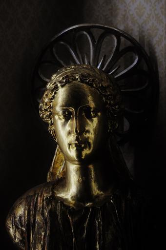 Keywords: mary holy figure statue golden bronze religion faith christian religious christianity catholic church spiritual praying dark gold angel