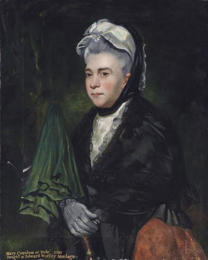| Keywords: Mary Stuart (1718-1794), Countess of Bute, after Sir Joshua Reynolds.jpg Artwork en Mary Stuart 1718-1794 Countess of Bute copy after a larger original 1780 Oil on canvas cm 88 3 71 1 unknown inscribed b l Mary Countess of Bute 1780 / Daughter of Edward Wortley Montagu http //www christies com/lotFinder/lot_details aspx intObjectID 5603067 Christie's other versions PD-old-100 DEFAULTSORT 1780; Countess of Bute Works after Joshua Reynolds Female portraits by Joshua Reynolds 18th-century portrait paintings location missing John Stuart 3rd Earl of Bute wife of 1780 oil on canvas paintings Portrait 1780 portrait paintings from Great Britain 1718 births 1794 deaths 18th-century oil portraits of standing women at half length 18th-century women of Great Britain Countesses in the Peerage of Great Britain Female portraits with gloves Lace caps in art Portraits with shawls Portraits with umbrellas Three-quarter view painted portraits of women facing left |