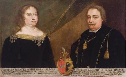 Keywords: Maryja Eleanora, Mikałaj Kryštap Chaleckija. Марыя Элеанора, Мікалай Крыштап Халецкія.jpg ікалая К ыштапа і а ыі Элеано ы Халецкіх Chalecki Portret Mikołaja Krzysztofa Chaleckiego i Marii Eleonory Stybychin ca 1646 oil canvas cm 76 120 Lithuanian Art Museum accession number object history credit line Lithuanian Art Museum See below PD-old-100 Mikołaj Krzysztof Chalecki 17th-century women of Poland 1640s portrait paintings National Museum of Lithuania People with medals in art People of the Polish-Lithuanian Commonwealth |