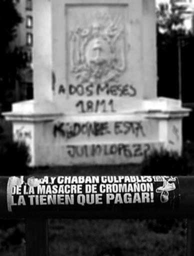 Keywords: Masacre de Cromañon.jpg Foto tirada na praça de maio em 19/11/2006 Masacre de Cromañon 2006-11-28 own assumed Fernangc República Cromañón nightclub fire Rioplatense Spanish