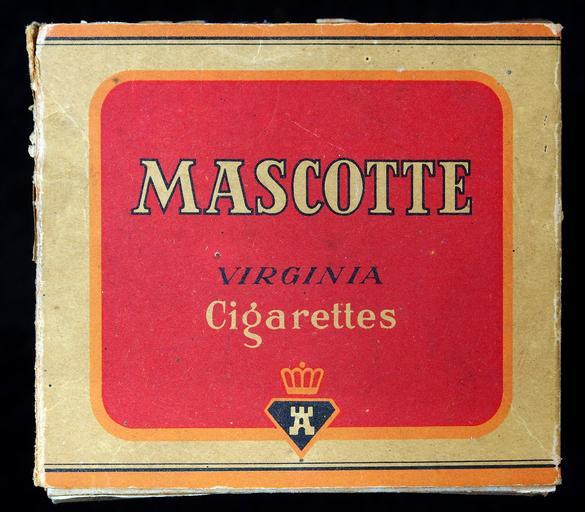 Keywords: Mascotte cigarettes box, front.JPG Very old packaging of a product that is not produced and not sold any more own 2014-04-13 10 33 28 Alf van Beem CC-Zero Trademarked Mascotte cigarettes