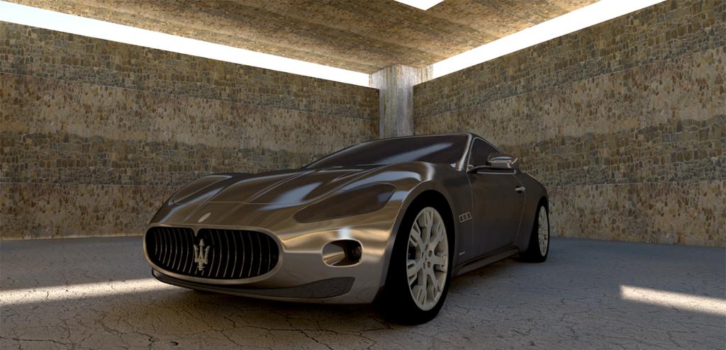 Keywords: maserati maserati gt sports car monochrome silver auto automobile contour metallic afternoon shadow hall concrete wall 3d 3d model computer graphics machine 3d visualization pirohd rendering design pininfarina